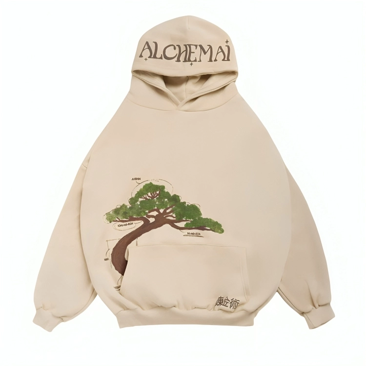 The Alchemai Tree of Life Hoodie is a distinctive piece that blends comfort with symbolism. It reflects the meaning of growth, strength, and connection, carrying the timeless image of the Tree of Life. Designed with attention to both style and detail, this hoodie provides an expressive look while remaining practical for everyday wear. It appeals to individuals who want more than just clothing, offering a garment that resonates with deeper values. This hoodie is crafted from premium cotton blend fabric, giving it a soft texture and lasting durability. The material feels comfortable against the skin and provides reliable warmth during cooler days. The relaxed fit allows ease of movement without sacrificing shape. The drawstring hood adds adjustability, while the ribbed cuffs and hem secure the fit and help retain heat. A spacious kangaroo pocket sits at the front, offering both function and casual style.
