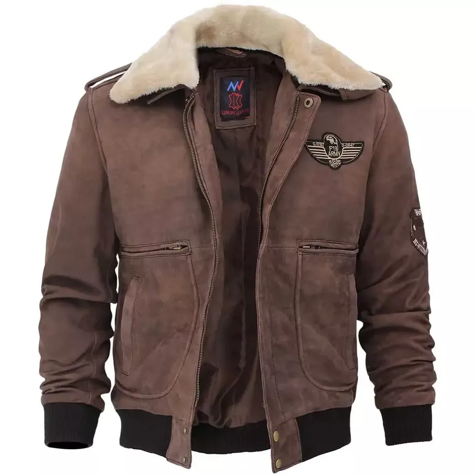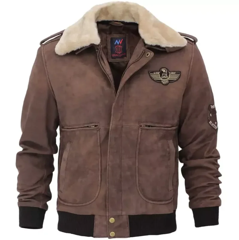 Soft Shearling Collar – Provides warmth and a signature aviator look.