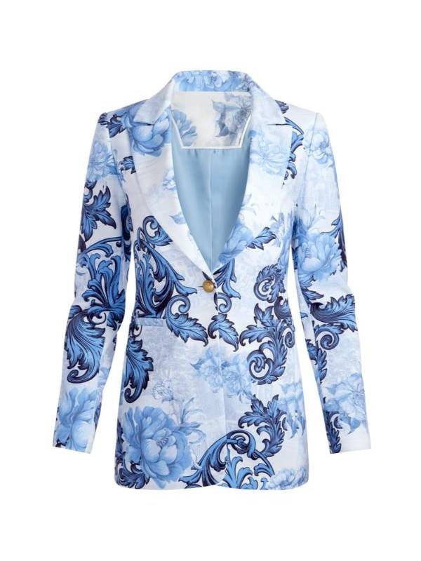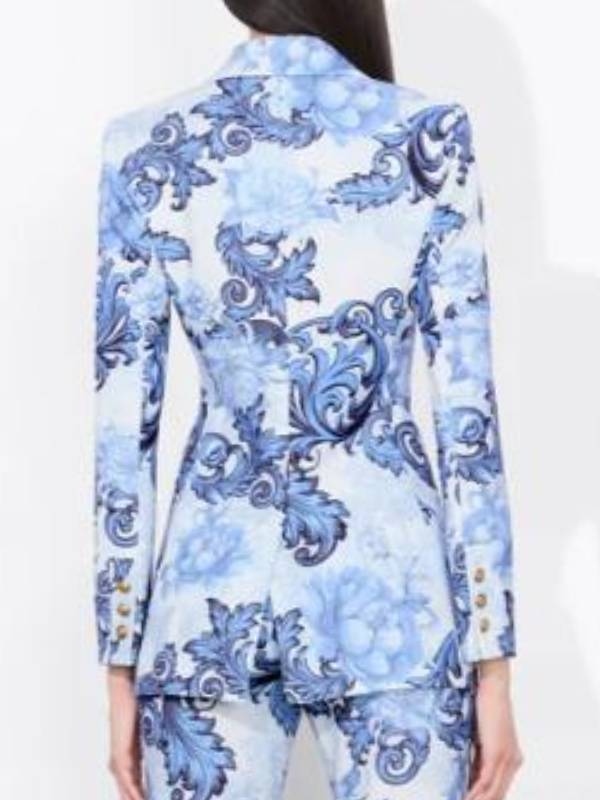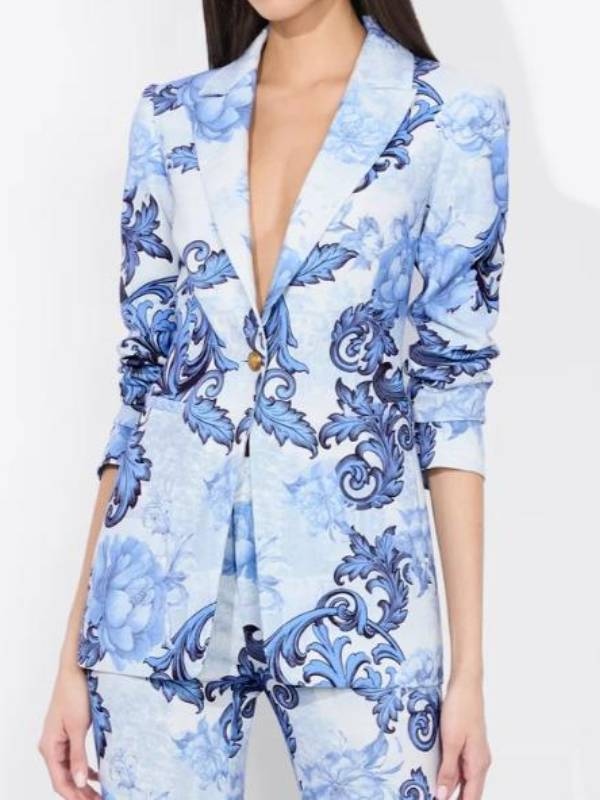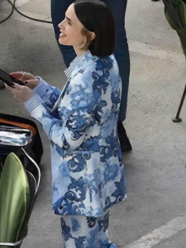 Emily In Paris S05 Blue Blazer from Emily in Paris S05 series embodies stylishness and striking designs that can be found in the fashionable outfits worn by the character portrayed by Lily Collins in Emily in Paris Season 5. It’s an artistic piece that exudes Parisian style with an assorted twist. Lily Collins Blue Printed Blazer Made with quality material, this blazer boasts a smooth touch and a very eye-catching blue print design that will definitely catch people’s attention. A blue printed blazer with a rich and complex design will definitely stand out if you are attending an event where you show the world that with fashion, you can convey character and swagger. It will definitely fit you well without restricting any of your body movements.