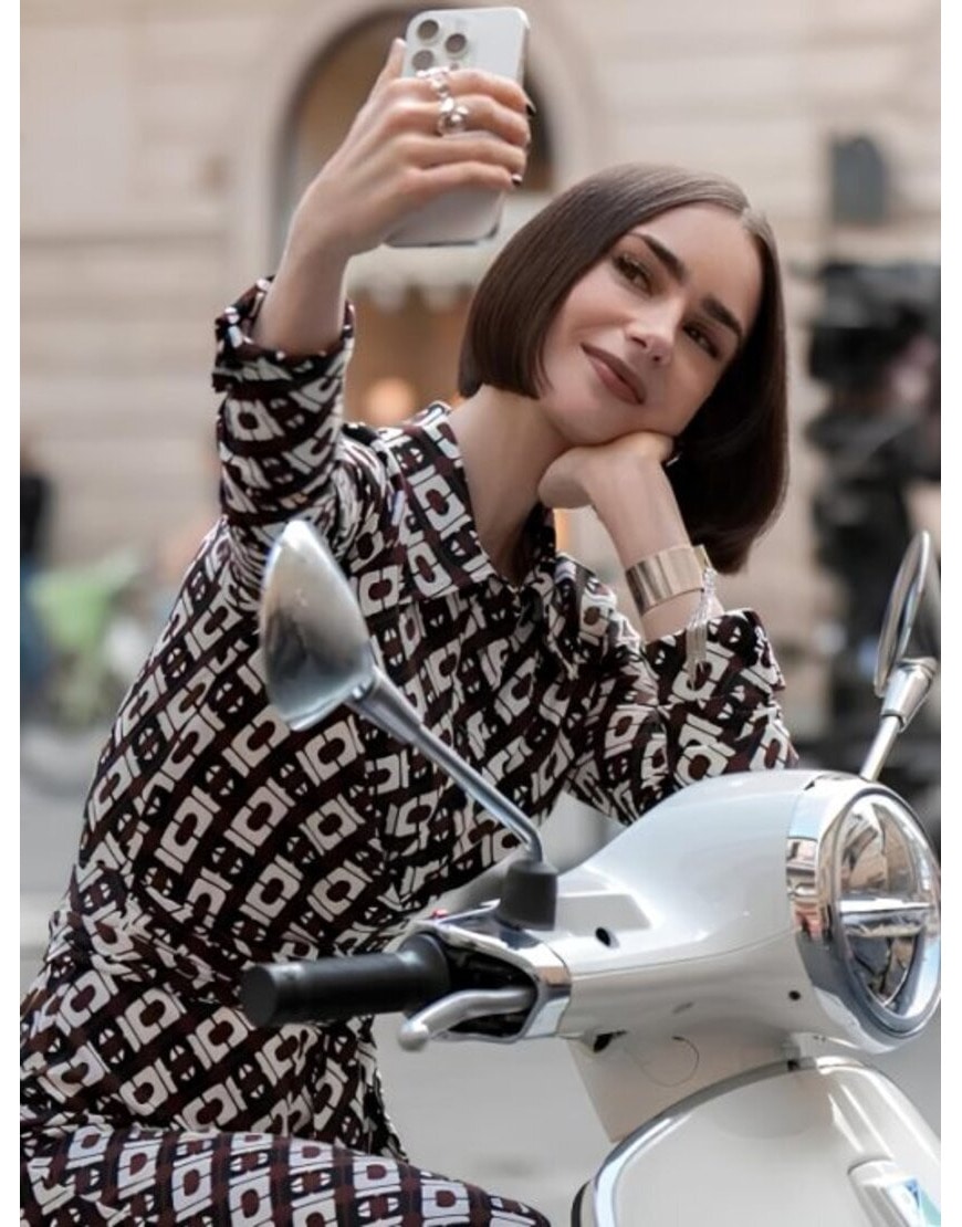 Emily In Paris S05 Lily Collins Chain Print Jumpsuit
