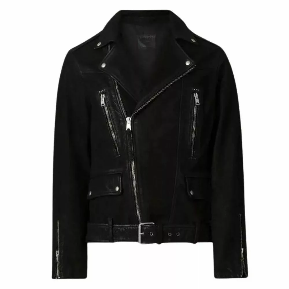 Mens Black Leather Suede Biker Jacket