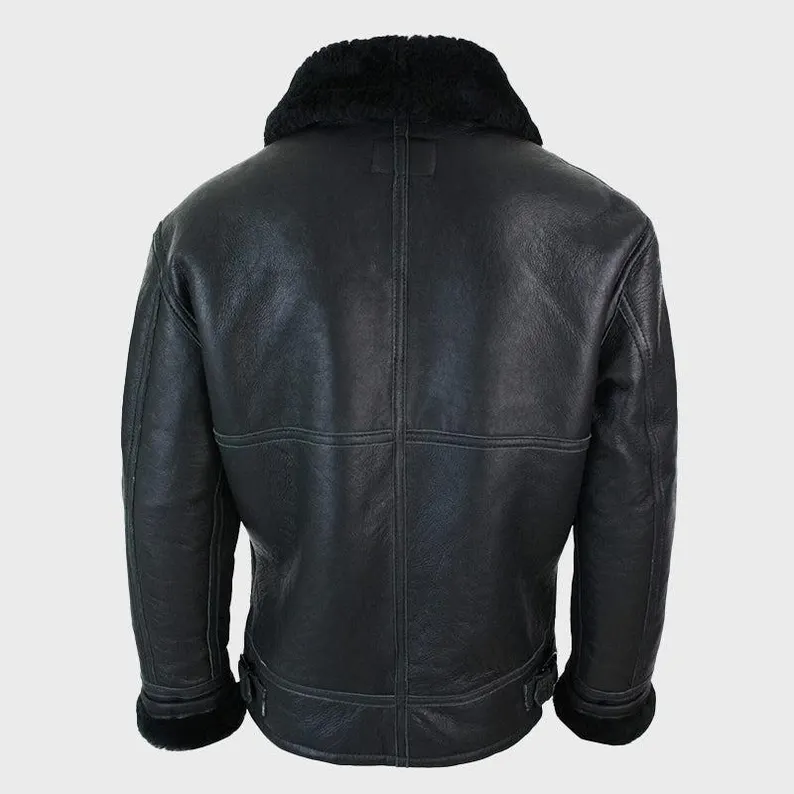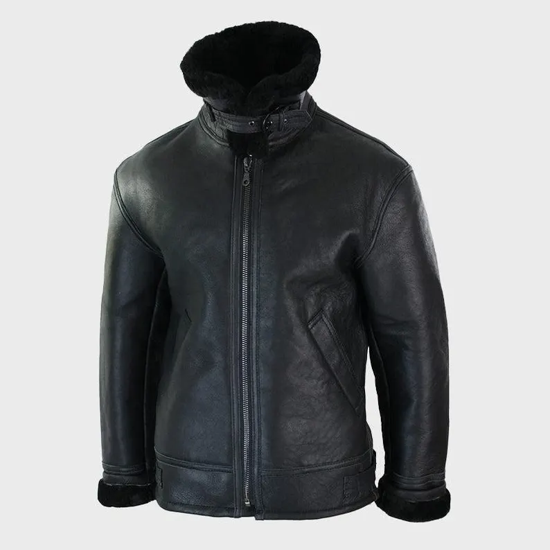 The Men’s Shearling Black Leather Jacket is a piece that combines rugged style with timeless comfort. It has a bold presence with its sleek black leather exterior, a look that never goes out of fashion. The texture feels smooth yet durable, giving it a sturdy edge that speaks to classic craftsmanship. The interior features soft shearling lining that provides instant warmth and coziness. It feels inviting the moment you put it on, wrapping you in comfort while still looking sharp. The collar is lined with shearling as well, adding both style and practicality, perfect for cold days when extra warmth is needed.