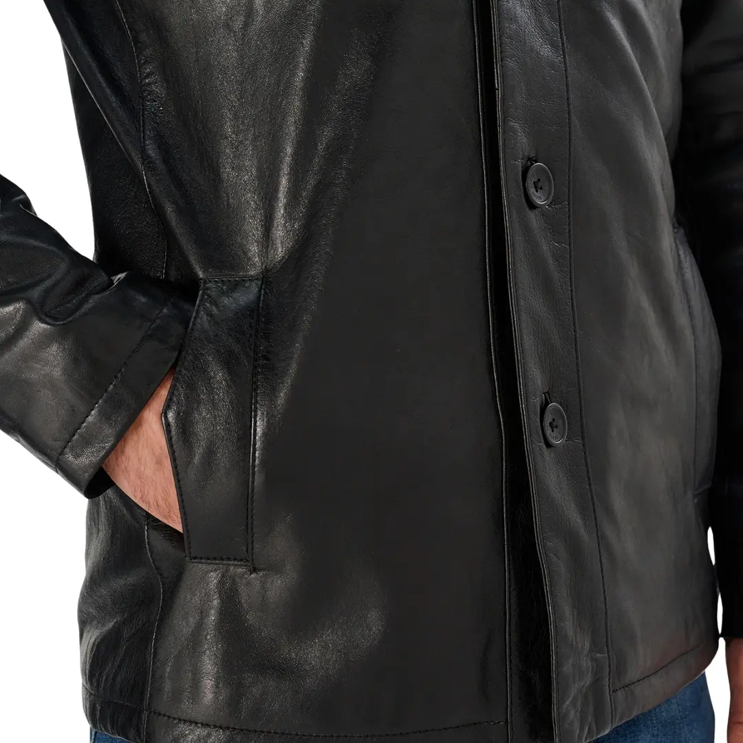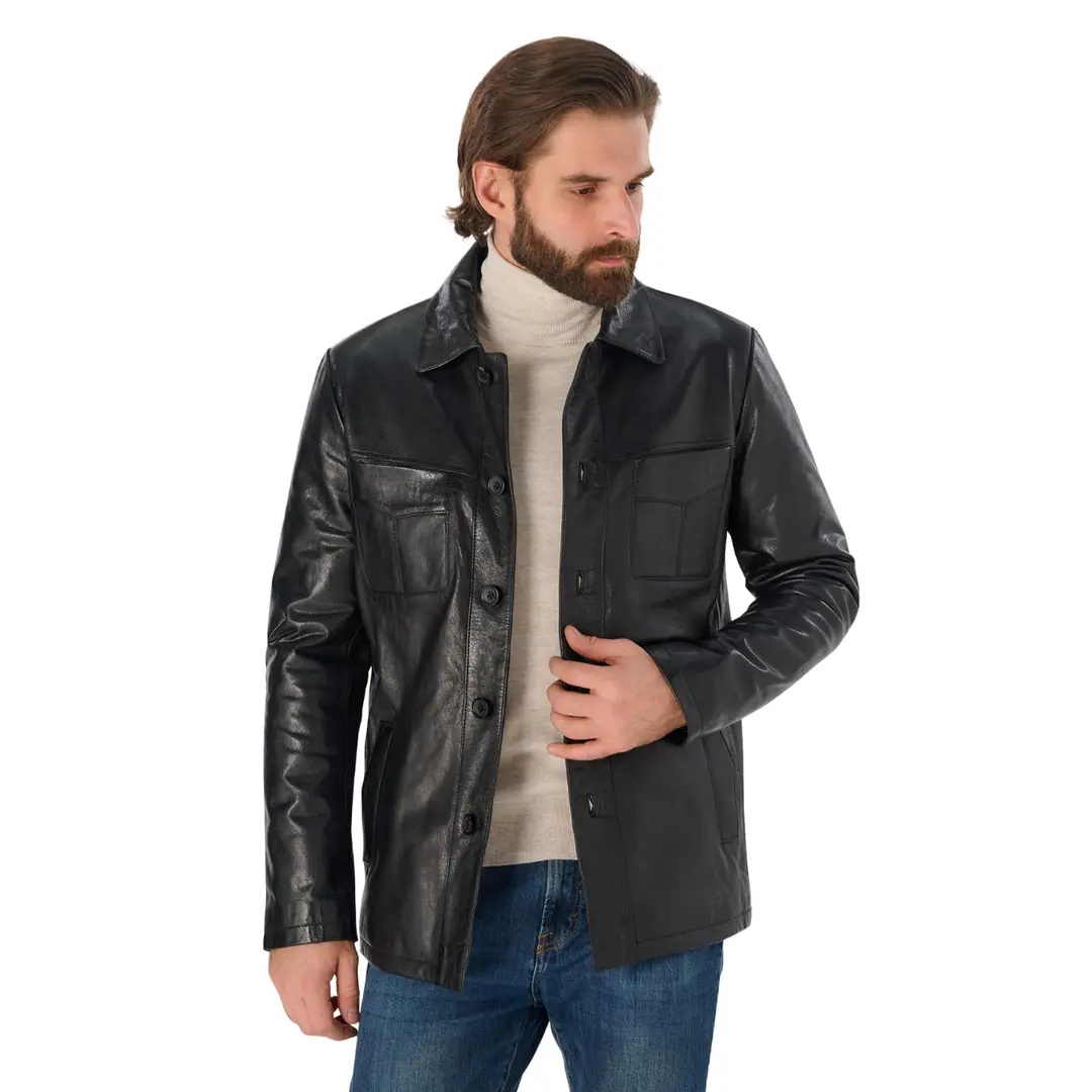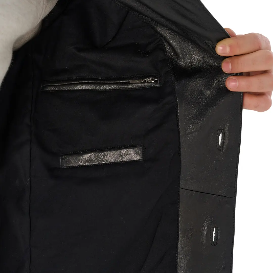 Men’s Vintage Black Jacket is a timeless fashion staple made from real leather, providing the highest quality, durability, and luxurious finish. This Black Jacket is designed in a timeless black shade and comes with a shirt collar and buttoned closure at the front, giving it a sophisticated and vintage touch. The vintage black jacket also has four pockets at the front and two internal pockets, providing ample storage space while keeping the look sleek and fashionable. The jacket also has full-length sleeves and a tailored fit, making it ideal for casual wear.