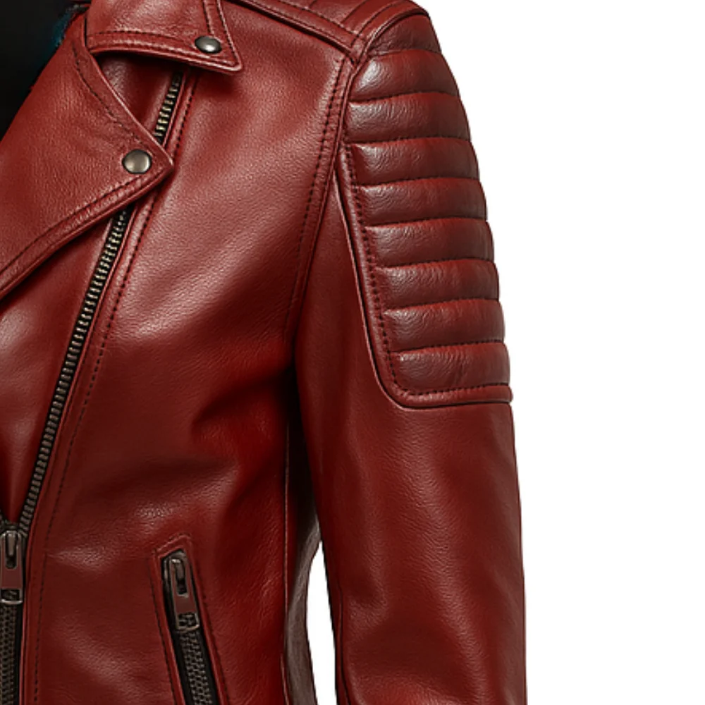 The Women’s Quilted Merlot Red Leather Biker Jacket is a bold fashion piece crafted for statement-makers. Made from premium genuine leather, it features a rich merlot red tone that catches the eye and adds depth to any outfit. The surface has a smooth, semi-gloss finish that enhances the luxurious feel of the leather. Quilted panels on the shoulders and sleeves create texture and elevate the classic biker silhouette. The asymmetrical front zipper adds edge and attitude, staying true to the iconic moto style. A wide lapel collar with snap buttons brings versatility and structure. Silver-tone hardware provides contrast against the deep red leather, giving the jacket a modern, polished touch.