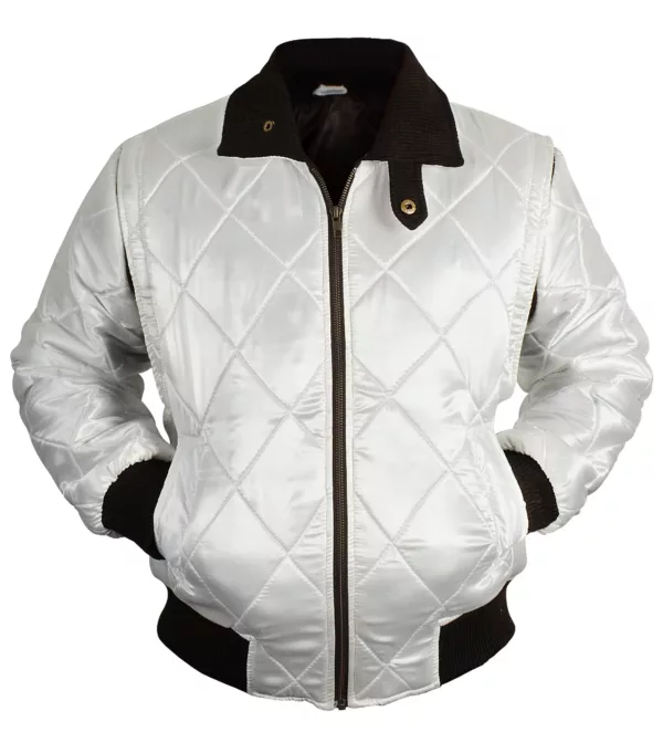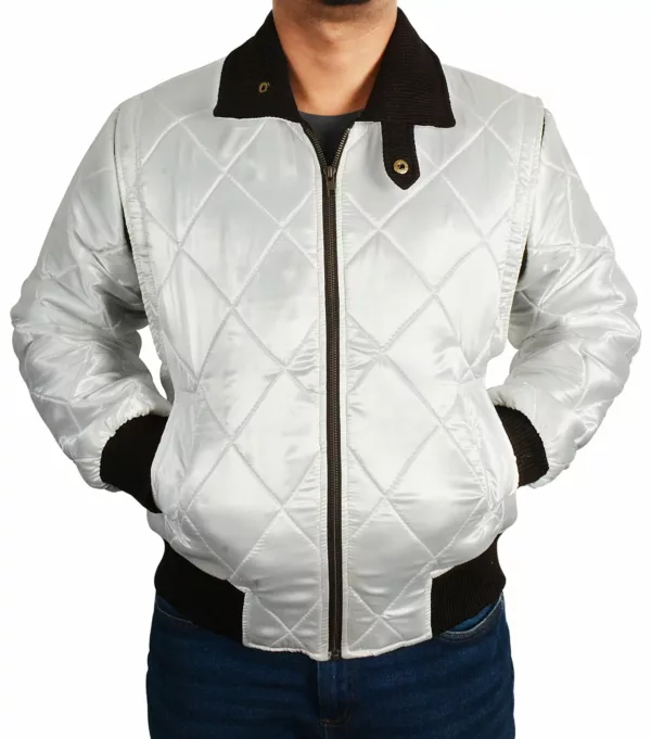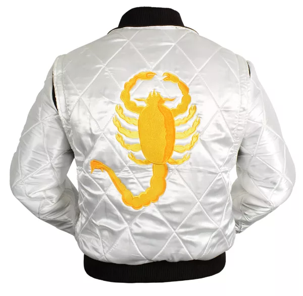 The jacket is made to feel as good as it looks. The satin fabric is smooth and lightweight, making it comfortable to wear without feeling bulky.  Ribbed cuffs, collar, and hem give it the snug bomber fit that keeps the style classic. A front zipper adds practicality while maintaining that sleek outline. Side pockets make it functional, giving space for small essentials. The Scorpion White Bomber Drive Jacket is perfect for anyone who loves bold fashion with a cinematic edge.It has a mix of vintage cool and modern flair that makes it timeless. This jacket is more than apparel—it’s a symbol of confidence, individuality, and iconic style.